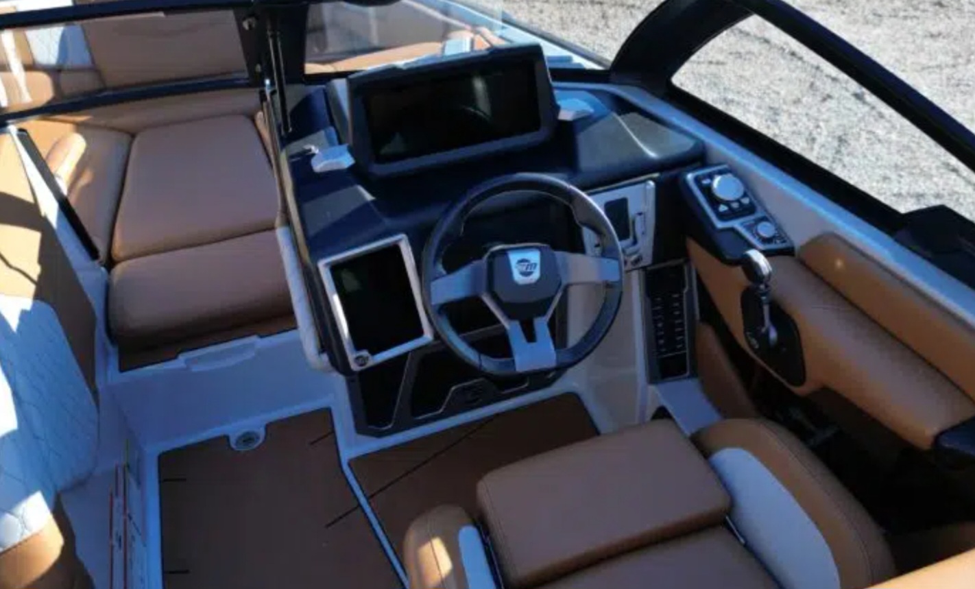 Under the hatch, this M220 is powered by Malibu’s elite Monsoon M6DI—a direct-injected 6.2L powerhouse known for its reliability, quiet operation, and massive torque. The M6 is the sweet spot in Malibu’s engine lineup, offering the perfect combination of fuel efficiency and raw pulling power, even when the boat is fully loaded with ballast and crew.